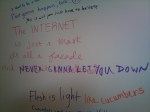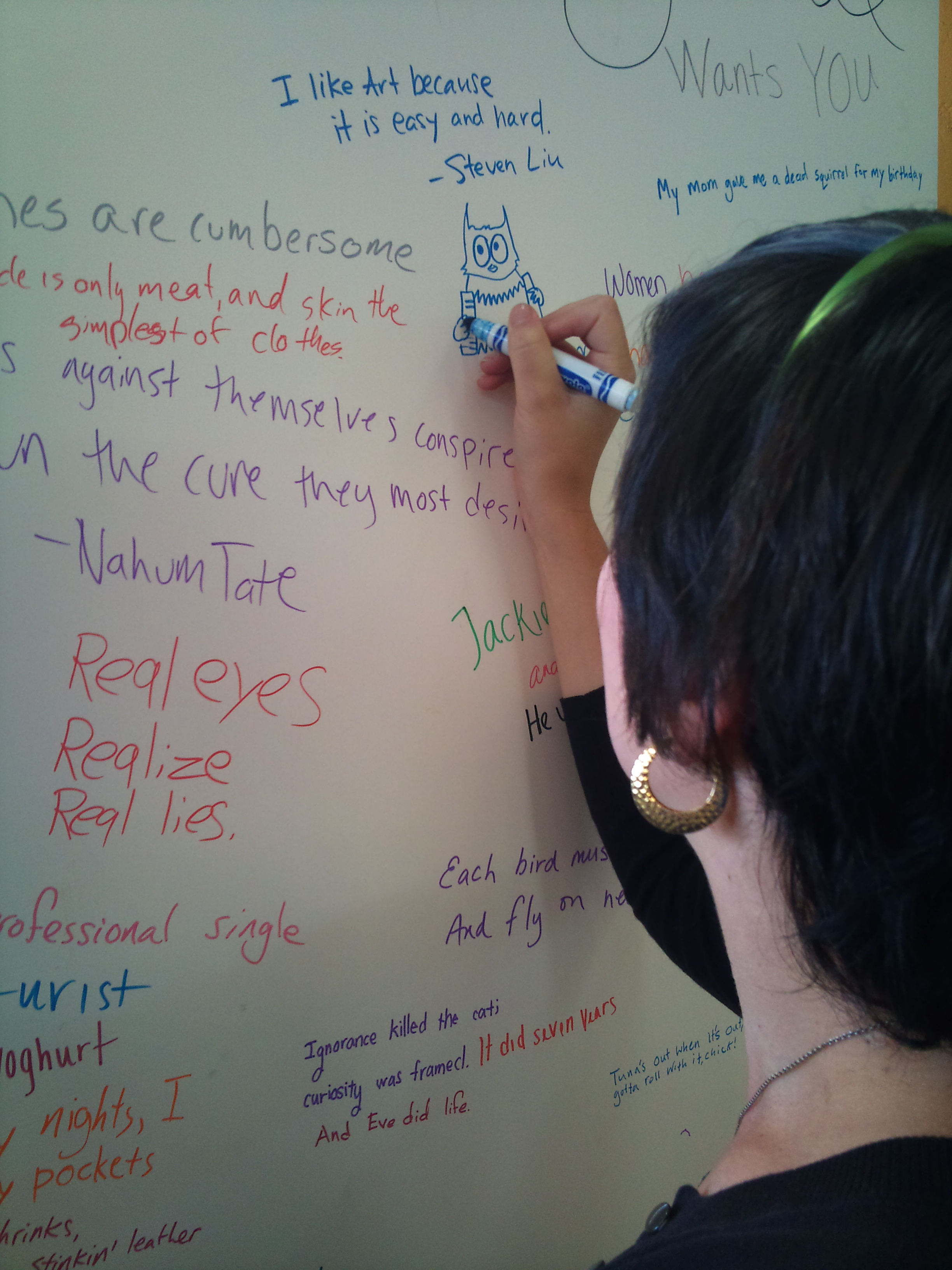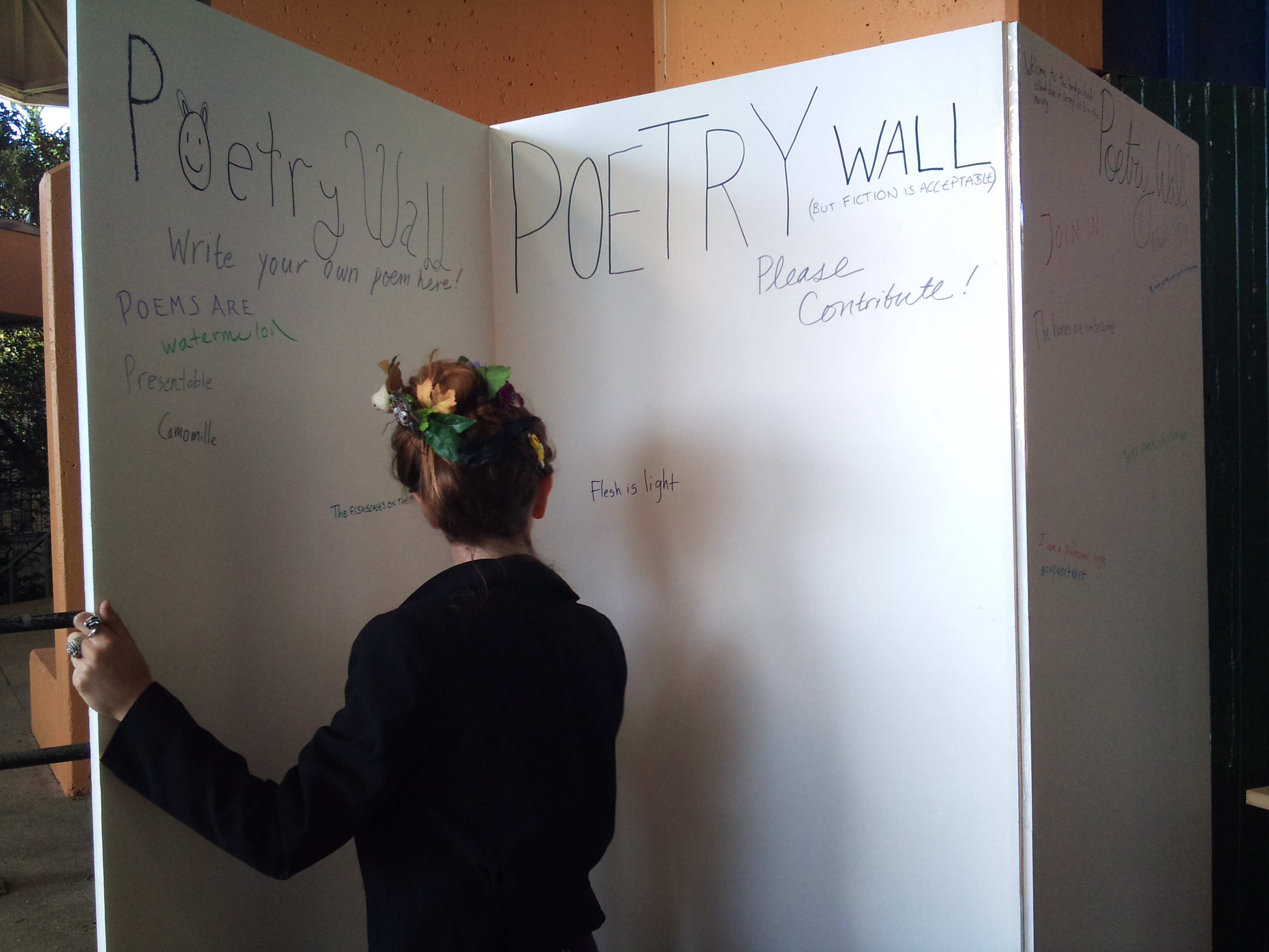 We began the Poetry Wall with little prompts that people added to and expanded on, and soon, all three sides were filled with poems and a couple of interesting sketches…