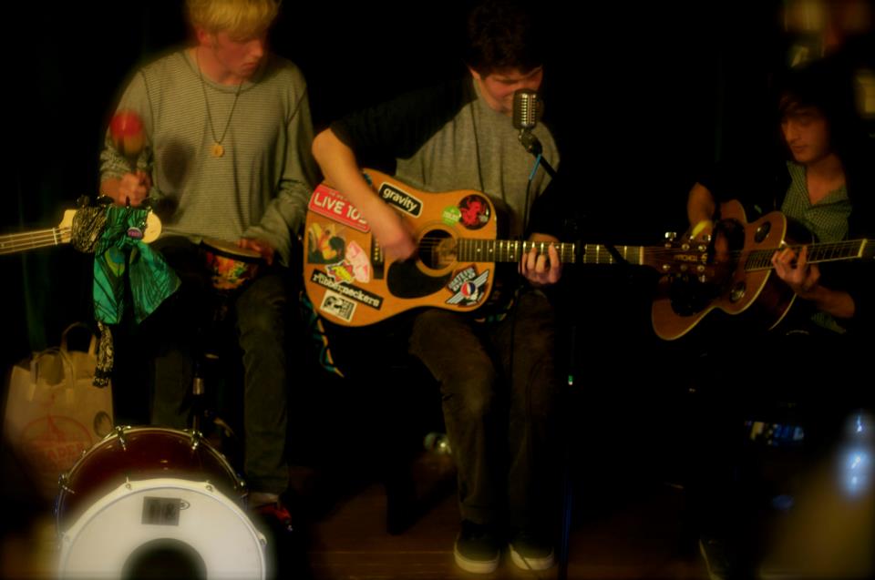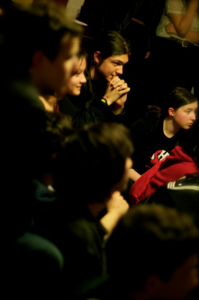 The crowd was filled with people– parents, students and wanderers alike– gathered as one attentive audience for the guest readers, reading poetry, short stories, and a script in this year’s publication.