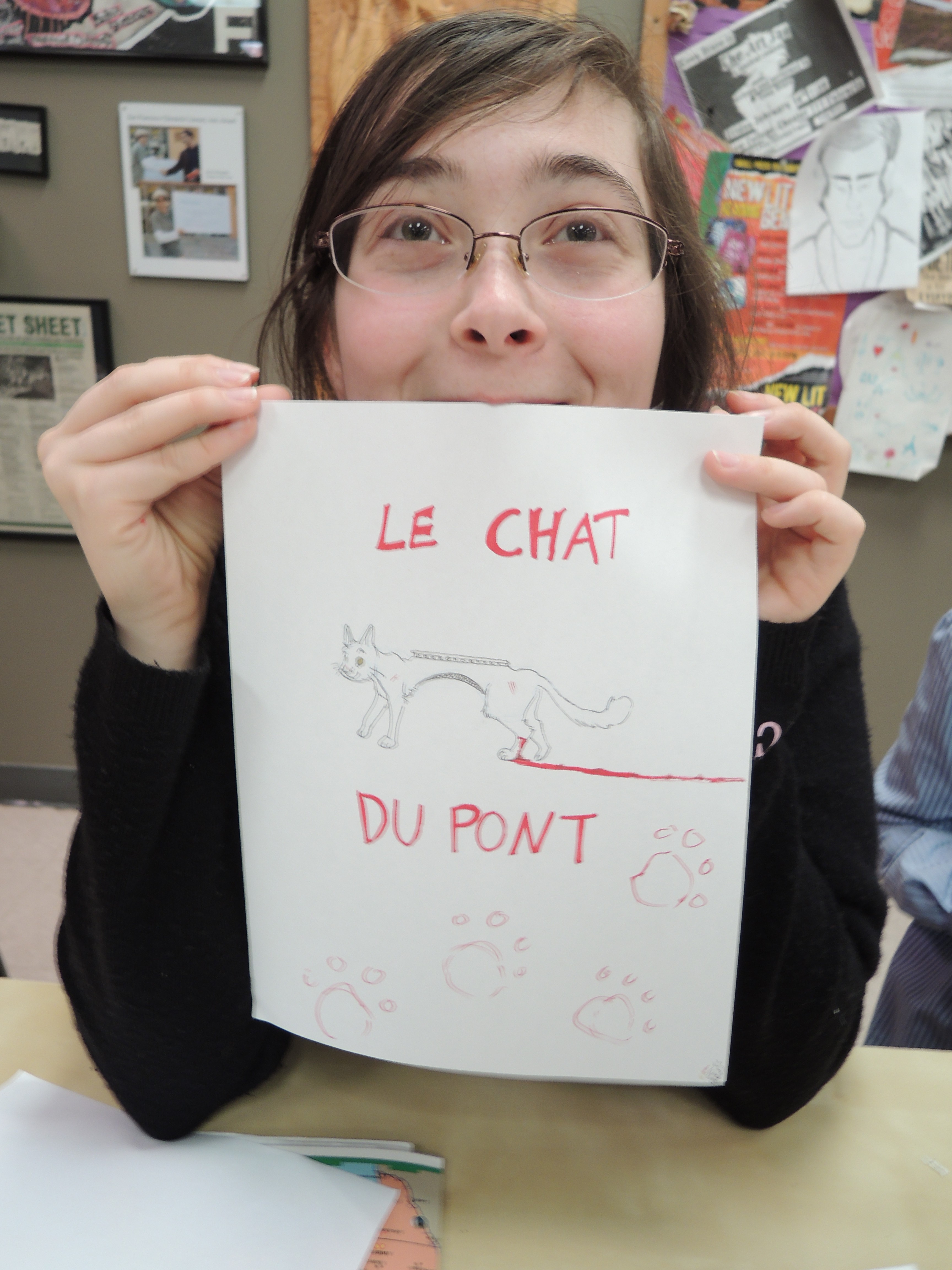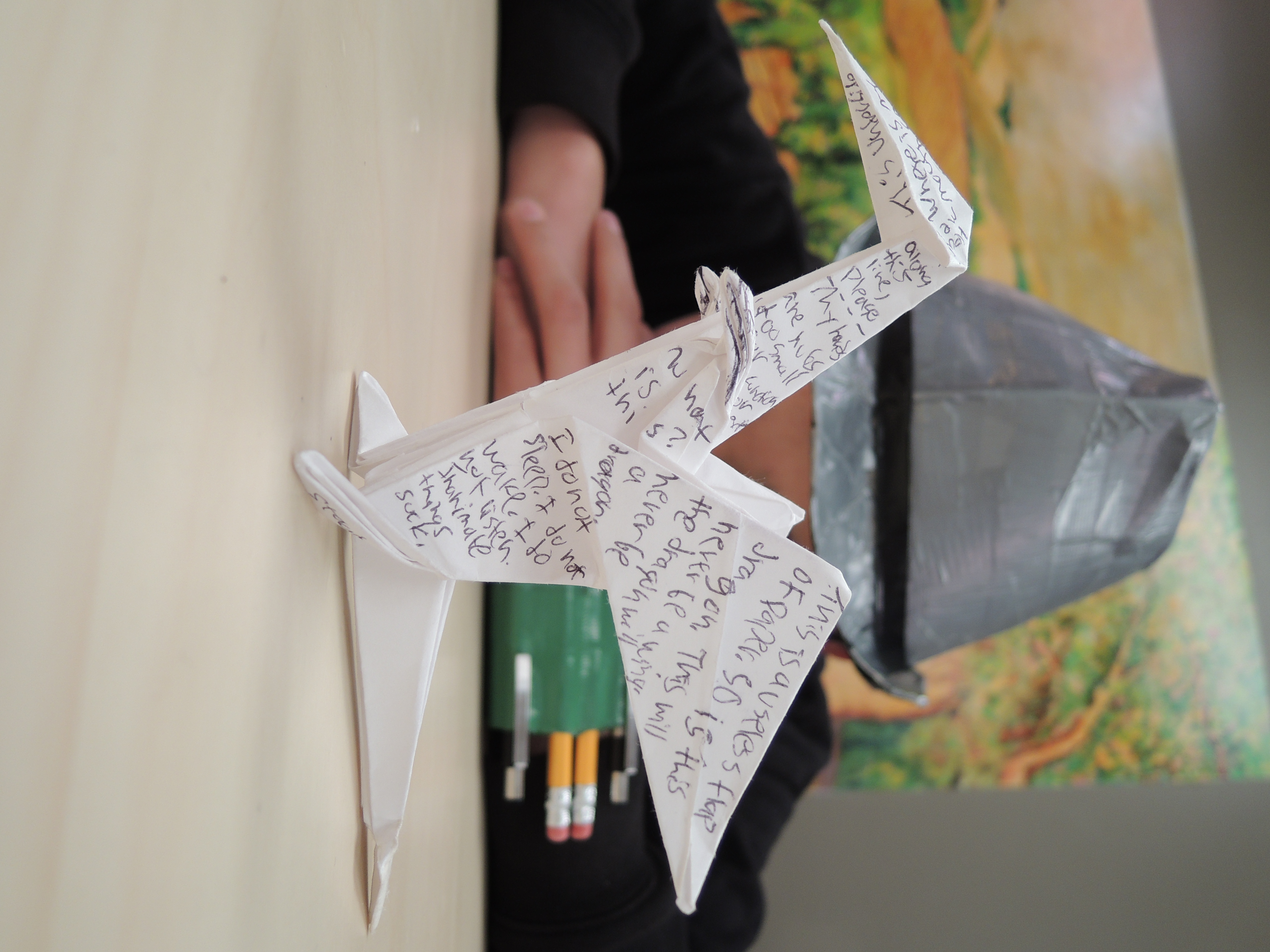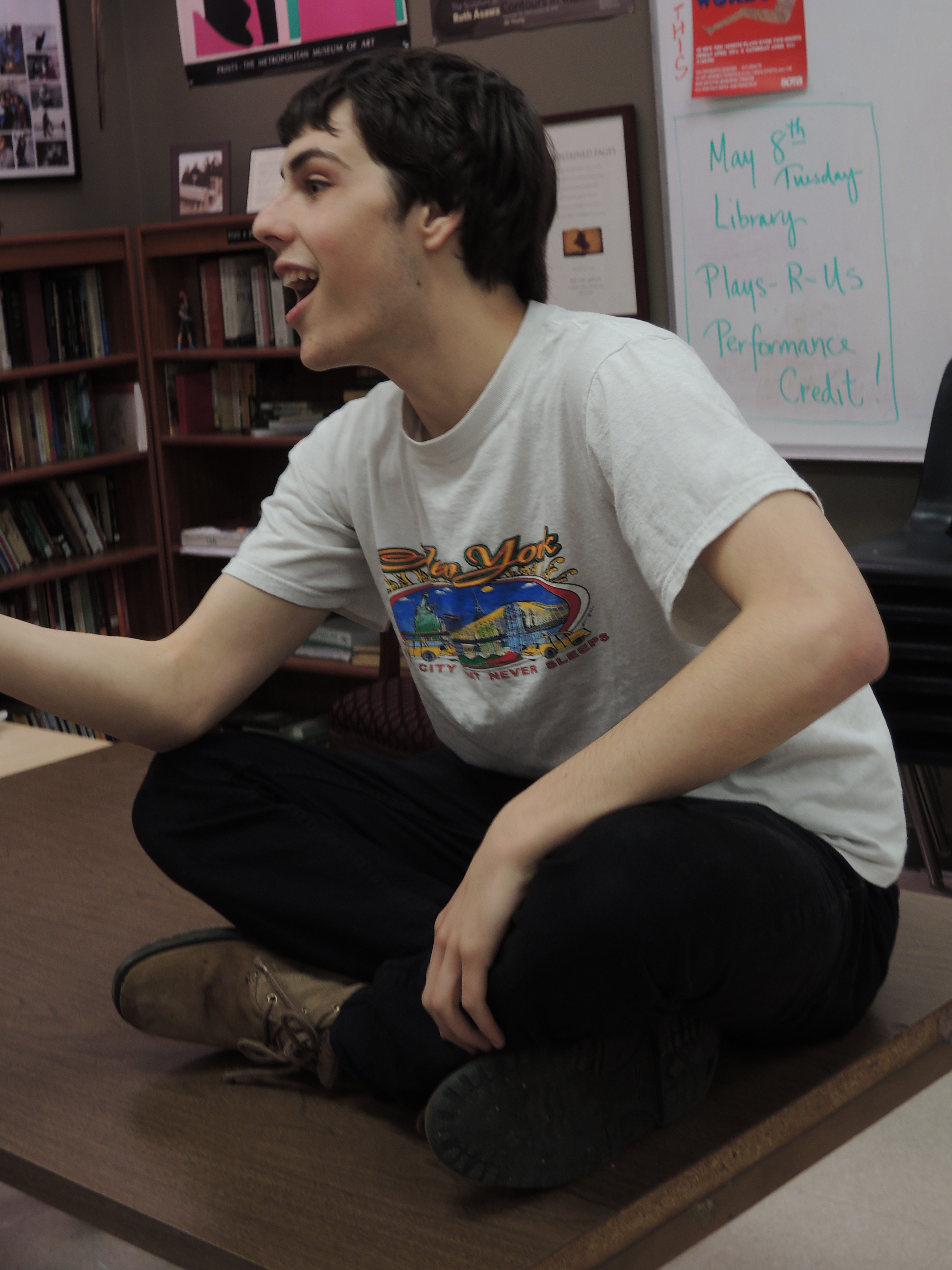 Senior Alex Pollack brought to our already-extensive table today Jean-Michel Basquiat, an American graffiti artist from the 80s. Armed with printouts of Basquiat’s art, he led the Cdubs on a ruminating discussion on Basquiat’s use of symbols, repetition, and his political stance, all in frame of Basquiat’s intriguing blend of visual art and words. After our discussion, we were assigned to create our own mixture of drawing and writing through whatever topic and medium we wish. The class set to work, each individual’s piece earnestly reflecting their ideas and creative processes.